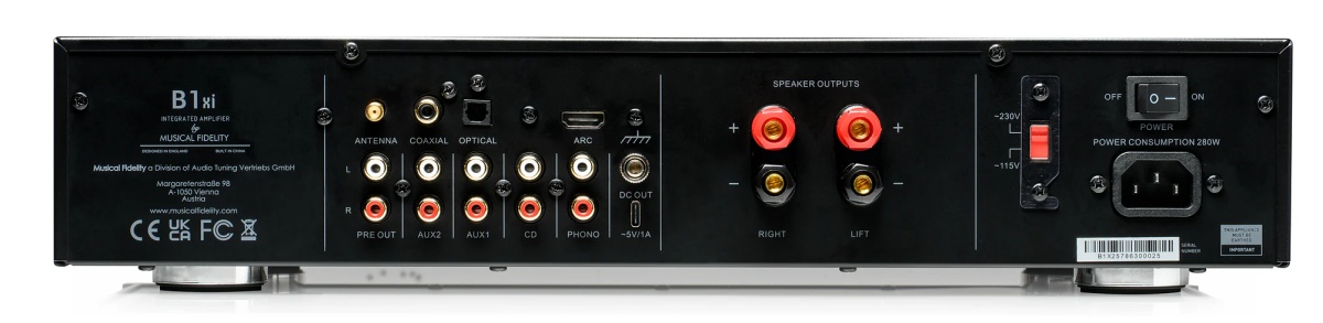 Ontworpen voor de uiteenlopende luisterbehoeften van vandaag, beschikt de versterker over een uitgebreide ingangsselectie: MM phono-ingang, coaxiale en optische digitale ingangen, ARC, Bluetooth en drie RCA-lijningangen – allemaal ontworpen voor naadloze integratie van bronnen. Een variabele RCA-pre-out ondersteunt subwoofer-aansluiting of bi-amping, terwijl een 5V USB-C-uitgang zorgt voor een handige en zuivere stroomvoorziening van hoge kwaliteit voor een externe streamer. De B1xi is gehuisvest in een robuuste volledig metalen behuizing met solide metalen bedieningselementen en een massief aluminium frontpaneel, en biedt de geluidskwaliteit en bouwkwaliteit waar Musical Fidelity om bekend staat, voor een pure, compromisloze audio-ervaring voor veeleisende muziekliefhebbers.